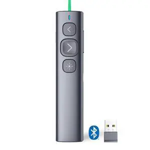 N95 Bluetooth Presentation Clicker with USB-A Receiver, PowerPoint Clicker for Presentation Remote, Rechargeable Wireless Presenter Pointer, Slide Clicker for PC/Laptop/e-Book(Green, BLE&USB-A)