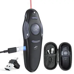 Rechargeable Presentation Clicker with Red Laser Pointer,Wireless Presenter Remote Powerpoint Clicker for Laptop Presentations,Silde Advancer for Office Classroom