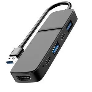 USB to HDMI Adapter, Dual USB C USB A 3.0 Hub: 5 Ports with 2* USB-C and 2* USB-A and 1* HDMI Extend for TV,DVD Player,Projector,Monitor,Laptop,PS4,Flash Drive, HDD,Xbox, Printer etc - 5 in 1