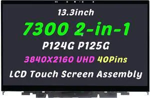 NUOLAISUN LCD Display Touch Screen Digitizer Assembly with Bezel UHD 13.3inch B133ZAN02.B Replacement for Dell Inspiron 13 7300 2-in-1 P124G P124G001 P125G P125G001(Only for 40Pins)