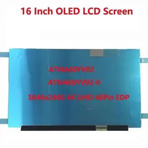 16 Inch Laptop OLED Screen ATNA60YV02-0 ATNA60YV02 AM-OLED 3840x2400 4K UHD IPS Panel 60Hz 100% DCI-P3 40Pin EDP Display Panel