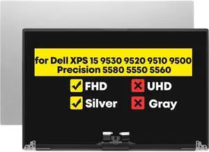 NUOLAISUN 15.6" Complete Assembly for Dell XPS 15 9530 9520 9510 9500 Precision 5580 5550 5560 1920x1200 LCD Full Top Non-Touch Screen Digitizer(Silver)