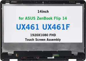 Replacement 14" for Asus ZenBook Flip 14 UX461 UX461U UX461UN UX461UA 1920x1080 FHD LCD Display Screen + Touch Digitizer + Bezel Frame Assembly