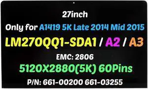 NUOLAISUN Screen Replacement for iMac 27in A1419 Late 2014 Mid 2015 MF886LL/A 661-00200 EMC 2806 27inch 5120X2880 QQHD 5K 60Pins LCD LED Screen Display Panel(Non-Touch)