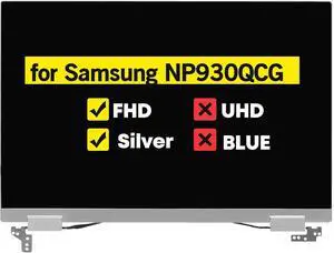 15.6" LCD Screen Replacement Full Top Complete Assembly for Samsung NP950QCG NT950QCG FHD 1920 * 1080 Touch Silver