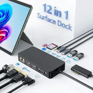 AUBEAMTO Docking Station Dual Monitor 12 in 1 USB C Hub Multiport Adapter Triple Display 4 USB Ports 2 HDMI VGA Gigabit Ethernet 100W PD TF/SD Audio for MacBook/Dell/HP/Lenovo Lap with Thunderbolt 3/4