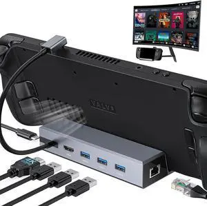 Docking Station for Steam Deck, 6-in-1 Steam Deck Dock with HDMI 2.0 Supports up to 4K@60Hz, 3 USB-A 3.0 Ports Each 5Gbps, Gigabit Ethernet, 100W USB-C PD3.0 Charging Port, Made for Valve Steam Deck