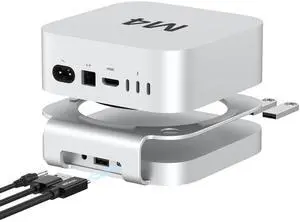 Akkyajaure 40Gbps USB4 Hub & Stand for Mac mini M4/M4 Pro, All-Aluminum Docking Station with 40Gbps M.2 SSD (NVMe PCle) Enclosure, 3*USB 2.0, 3.5mm Audio, USB4 Host ^^ Mac mini M4 USB-4 Dock