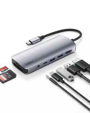Belkin USB-C Hub, 7-in-1 Multiport Adapter - USB Docking Station with 4K HDMI, USB-C PD 3.0 Port, 2 x USB-A 3.1 Ports, SD Card & MicroSD Card Slots, & 3.5mm Audio Jack for MacBook, Air, iPad Pro, XPS