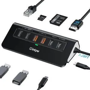 intpw USB C Hub Ethernet, 10Gbps Laptop Docking Station 10-in-1, 4K@60Hz HDMI, 3 USB C/A 3.2 Data, LAN, 2 USB A 2.0, PD 100W, SD/TF Ports, 3.28FT Powered USB Hub for Laptop, PC, iPhone 16/15, Mac