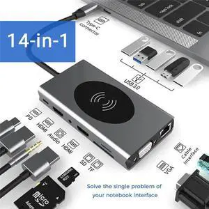 USB C Docking Station, 15 in 1 Laptop Docking Station Dual Monitor, with 4K- HDMI, VGA, Gigablit Ethernet, 7 USB, SD/TF Card Reader,Audio Port,Wireless Charging Compatible with MacBook/Surface/HP/Dell Limited time offer, ends 03/06