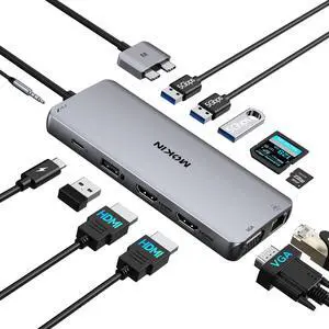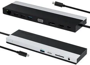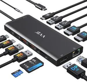 Dual Display USB Type C HUB with to VGA HDMI, Displayport, PD3.0, Ethernet, 7 USB Ports, SD/TF,Wireless Charging Multiport Adapter Docking Station Dongle for MacBook Air Pro and MoreLimited time offer, ends 04/06