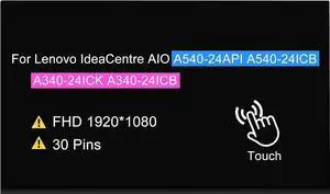 GBOLE 23.8" LCD Screen Replacement for Lenovo IdeaCentre All in One A540-24API A540-24ICB A340-24ICK A340-24ICB F0EL F0EM F0ER F0ER0080US F0ER00BRUS F0EM0003US Display Panel (Touch Version)