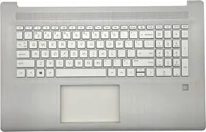 Replacement Upper Case Palmrest for HP 17.3 Inch Laptop 17-CN 17-CP 17T-CN 17Z-CP Laptop with Backlit Keyboard Assembly with Fingerprint Hole M50457-001 Natural Silver