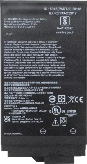 DGFTB BP3S2P3450P-02 Laptop Battery Replacement for GETAC S410 G4 Series 441914800001 242128700001 242914800001 10.8V 72Wh/6600mAh New Upgrade Li-ion