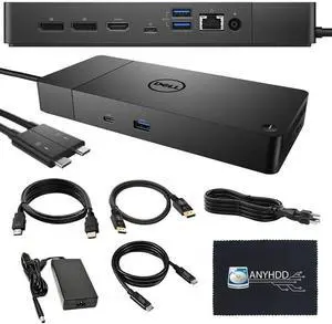 Dell WD19S Docking Station 130W (90W Power Delivery) - Dell Docking Station Dual Monitor for Laptop with 130W Power Adapter + Anyhdd HDMI Cable + DisplayPort Cable + USB-C Cable + Microfiber Cloth