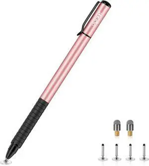Digiroot Universal Stylus [2-in-1] Disc Stylus Pens for All Touch Screens Cell Phones iPad Tablets Laptops with 6 Replacement Tips(4 Discs 2 Fiber Tips Included) - (Rose Gold)
