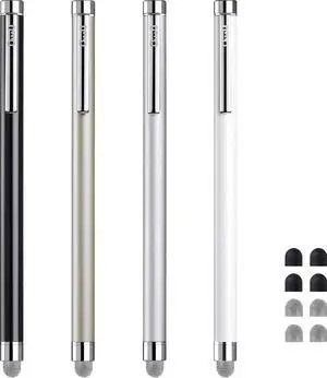 Stylus Pens for Touch Screens 4 Pcs Mesh Fiber Stylus with 4 Replaceable Mesh Tips and 4 Replaceable Rubber Tips (Silver Black White Champagne)