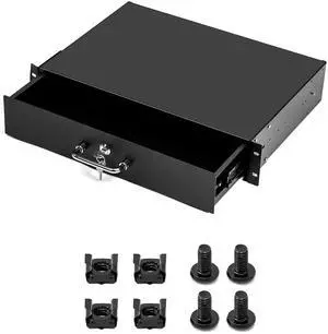 2U Rack Mount Drawer, Server Rack Drawer w/Combination Lock & Foam Pad, Powder Coated Locking Rack Drawer for 19 Inch Network Equipment/Server/DJ/AV Racks, Cabinets and Enclosures
