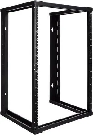 ynVISION.DESIGN 15U Open Frame AV Rack with 1U & 2U Shelves, Lacer Bar, Leveling Feet & Business Card Holder Server, Network & Audio Rack Includes Mounting Hardware