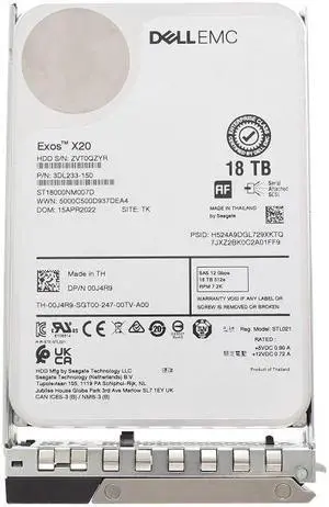 Dell EMC 0J4R9 18TB 7.2K RPM SAS 12Gbps 512e 3.5inch Hot-Plug Hard Drive with Kit