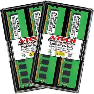 A-Tech 32GB (4x8GB) 1Rx8 PC4-23400E DDR4 2933 MHz ECC UDIMM Unbuffered DIMM 288-Pin Single Rank x8 Server & Workstation RAM Memory Upgrade Kit