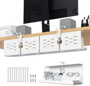 Under Desk Cable Management Tray No Drill, 13.38'' Metal Tray with Clamp for Wire Management, Litwaro Cord Organizer Home Office Damage to Standing Desk, White- Brand: BlackHawk Labs