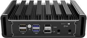 Fanless Mini PC 6305 with 4 lntel i226-V 2.5G LANs, 2*USB3.0, 2*USB2.0,SIM Card Slot,Mini Desktop Computer Support Dual Band WiFi for Industry Business,NO RAM NO SSD
