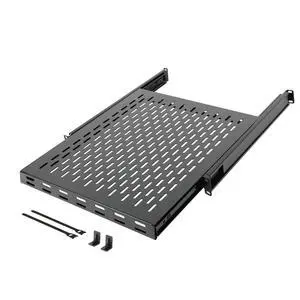 1U Sliding Rack Shelf,4-Post Vented Rack Mount Shelf,13.8in Deep with Adjustable Mounting Depth 13.8-19.7in,Supports to 110lbs,for 19 Inch AV/Network Equipment Rack,Unassembled,Black