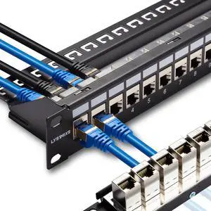 iwillink 10Gbps Cat7 Patch Panel 24 Port, RJ45 Through Coupler 1U Shielded Patch Panel STP 19-Inch with Back Bar, Wallmount or Rackmount, Compatible with Cat7, Cat6A, Cat6, Cat5e, Cabling