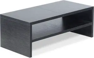 TEAMIX 24 inch Monitor Stand Riser, Black Wood & Steel Computer Monitor Stand with Storage, Laptop, PC, Printer Stand Riser for Desktop Office Desk Organizers