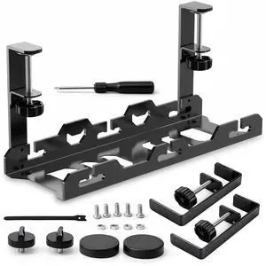 No-Drill Under Desk Cable Management Tray - 2-Pack Wire & Cord Organizer - Standing Desk Cable Management - Power Strip Holder - M