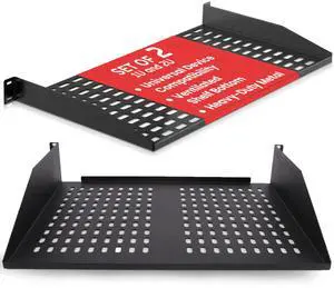 OREI 2U Rack Shelf 19" Universal Vented Mount Rack (2-Pack) Heavy-Duty Steel Server Rack Shelf for IT, Network & AV Equipment, 22kg Capacity, EIA-310C Compliant