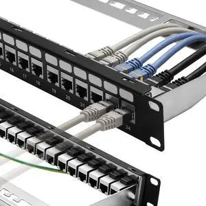 iwillink 10Gbps Cat7 Patch Panel 24 Port, RJ45 Through Coupler 1U Shielded Patch Panel STP 19-Inch with Back Bar, Wallmount or Rackmount, Compatible with Cat7, Cat6A, Cat6, Cat5e, Cabling
