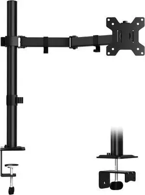ERGOMAKER Single Monitor Mount for Desk, Monitor Stand Fits 13" to 27" LCD Screens, Fully Adjustable Display Arm with C-Clamp and Grommet Base, VESA 75x75 100x100mm, Black