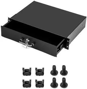 QWORK 2U Rack Mount Drawer Lockable Steel Storage Rack, 2U Drawer Server Cabinet Case for 19" Server Cabinet, Studio & DJ Setup