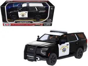 2025 Chevrolet Tahoe Police Pursuit Vehicle "California Highway Patrol" Black and White 1/24 Diecast Model Car by Motormax