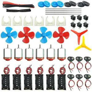 6 Set DC Motors Kit, Mini Electric Hobby Motor 3V -12V 25000 RPM Strong Magnetic with Shaft Propeller, 2 x AA Battery Holder,9V Battery Clip Connector,Plastic Wheels for DIY Science Projects