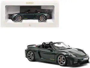 2023 Porsche 718 Spyder RS Weissach Pack Forest Green Metallic with Carbon Hood Stripes 1/18 Diecast Model Car by Norev