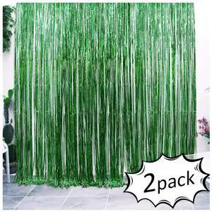 Iridescent Foil Fringe Curtains Jungle Theme Party Supplies Birthday Wedding Party Window Door Decorations Fun Photo Booth Backdrop Props(2 Packs, (W) 3.28*(H) 6.56 Ft, Green)
