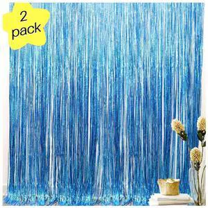 Blue Iridescent Party Decorations Supplies Favors, Iridescent Party Supplies, Tinsel Foil Fringe Curtains Fun Photo Booth Props, Birthday Wedding Party Window Door Decorations (W)3.2*(H)6.5 Ft, 2 PACK