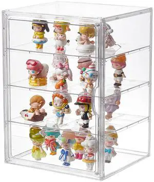 3 Tiers Clear Acrylic Display Case, Plastic Storage Bins with 2 Adjustable Divider and Magnetic Door,Stackable Display Box for Figures Showcase (XXL-4 Tier-1 Pack)