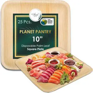 Planet Pantry Disposable Palm Leaf 10" Square Plate (25 pcs) Wooden Bamboo-Like Paper and Plastic Alternative Eco-Friendly for Food, Party, Buffet