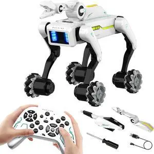 3 in 1 Robot Dog with Wheels Kit, 30+ Bionic Actions, Voice & Remote Control, Programmable Moves, Rechargeable Battery, All-Terrain Stunt Pet Toy for Kids (Removable Claw & Cannon)