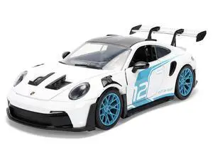 Porsche 911 GT3 RS (992) #12 White with Blue Stripes and Carbon Top "Hyper-Spec" Series 1/24 Diecast Model Car by Jada
