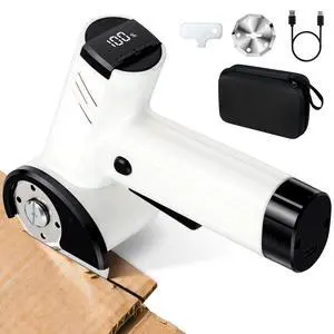 Cardboard Cutter, 4 Speeds Adjustment 4.2V Cordless Electric Scissors, Cardboard Box Cutter with LED Light, Safety Lock & Extra Blades, Electric Box Cutter for Fabric, Cardboard, Leather, Carpet-White