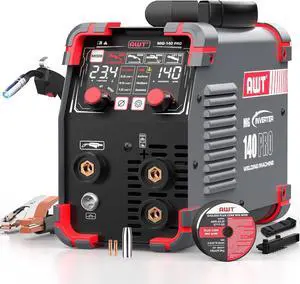 AWT LED Digital Display 140Amp MIG Welder Flux Core MIG Welder/Stick/Lift TIG 3 in 1 Welding Machine,Welder Machine 110V With Synergy IGBT Inverter, Portable Gasless Welder Equipment