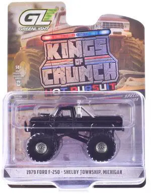 1979 Ford F-250 Monster Truck "Shelby Township Police, Michigan" Black 1/64 Scale Diecast Model Cars by Greenlight