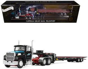 Ford LTL 9000 Day Cab and Landoll 440B-50CA Traveling Axle Trailer Black with Blue Hood 1/64 Diecast Model by DCP/First Gear