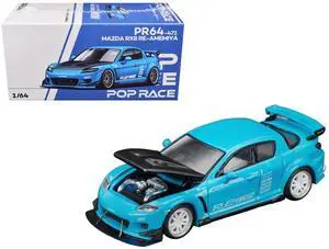 Mazda RX7 (FC3S) RE Amemiya RHD (Right Hand Drive) Blue Metallic with Carbon Hood 1/64 Diecast Model Car by Pop Race